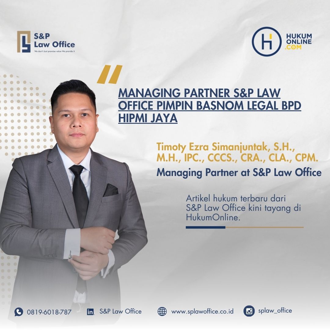 Managing Partner S&P Law Office Pimpin Basnom Legal BPD HIPMI JayaManaging Partner S&P Law Office, Timoty Ezra Simanjuntak,…