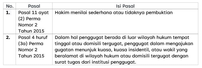 Dalam Perma Gugatan Sederhana, terdapat beberapa pasal penting yang harus diperhatikan: